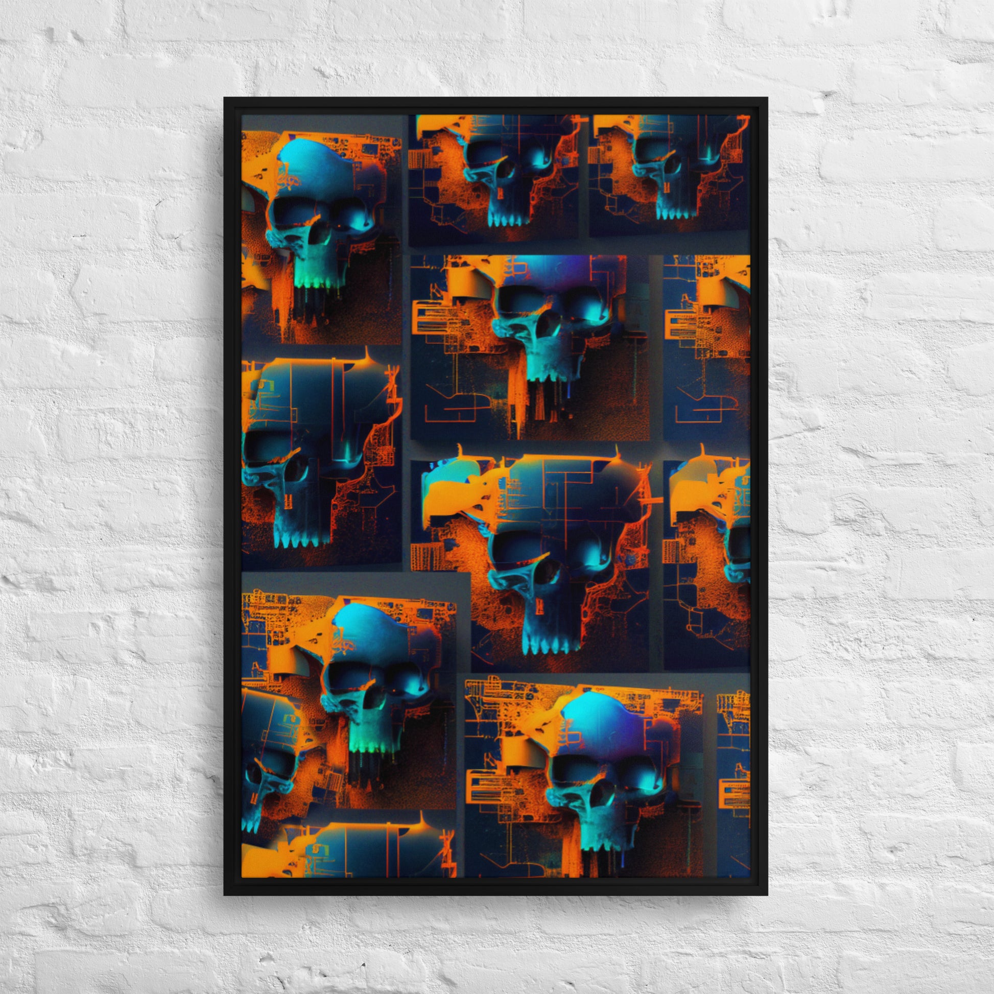Blue Skull Pattern 01 Framed canvas 24" x 36"